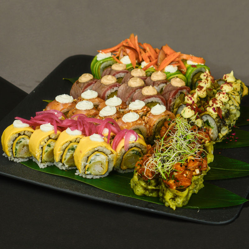 Cheese Ebi; Philadelphia Tataki, Tuna Chipotle, TarTar salmon, Ebi Green, Almendra, Shinko set 48 pza./1800g