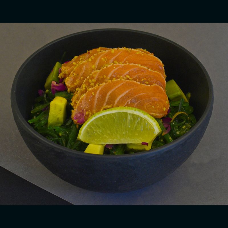 Salmon Tataki, Goma Wakame, Lima Aciete de Sasamo, Aguacate 300g